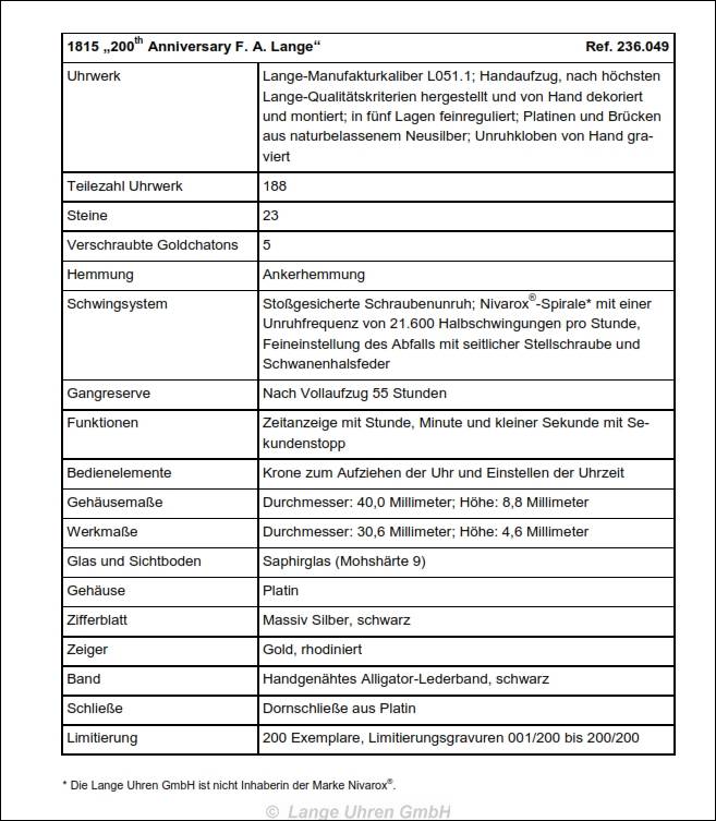 Die auf 200 Exemplare limitierte 1815 „200 th Anniversary F. A. Lange“ aus Platin