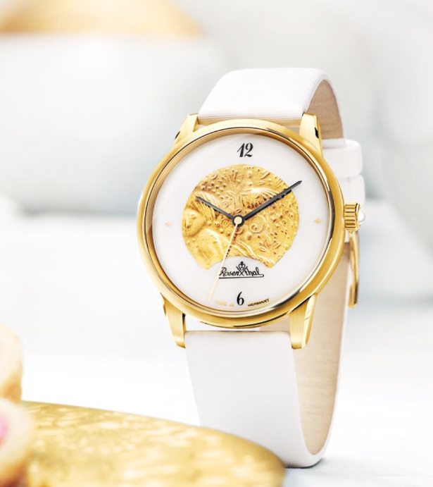 Umrahmt werden diese außergewöhnlichen Zeitmesser von gelbgoldenen oder Gehäusen aus Edelstahl. Darüber hinaus verleiht eine zierliche Krone mit Swarovski-Kristall den Uhren eine ansprechende feminine Anmutung. Feine Leder- und Textilbänder in schwarz, braun oder kühlem Weiß harmonieren aufs Beste mit dem edlen Erscheinungsbild dieser Kollektion moderner Lieblingsstücke. Die Zifferblätter mit ihren raffinierten Details wie eingearbeitete Porzellantropfen sowie Gold – oder Silberdekorationen bringen den seidigen Schimmer des Porzellans auf exquisite Weise zur Geltung. Alle Uhren sind wasserfest bis 3 atm und werden in Deutschland von Meistern ihres Fachs per Hand montiert. Die Zifferblätter entstehen im Werk von Rosenthal am Rothbühl im oberfränkischen Selb mit viel Liebe zum Detail und größter handwerklicher Fertigungskunst.