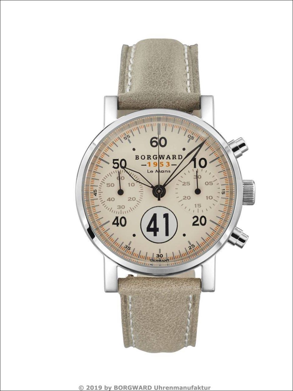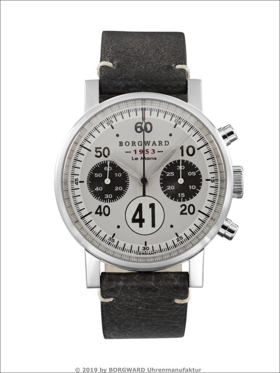 Der Name der neuen Uhren-Edition aus der Uhrenmanufaktur BORGWARD ist nicht zufällig gewählt. »FORTY ONE« steht für die Startnummer eines der zwei Hansa 1500 Renncoupé-Boliden aus der Autoschmiede in Bremen, die 1953 an dem legendären 24-Stunden-Rennen in Le Mans teilnahmen. Nur ein Rennwagen überdauerte die Zeit in Schweden, um 65 Jahre später, im Sommer 2018, wieder mit der gleichen Startnummer 41 auf der legendären Strecke in Le Mans beim 24-Stunden-Rennen zu starten.