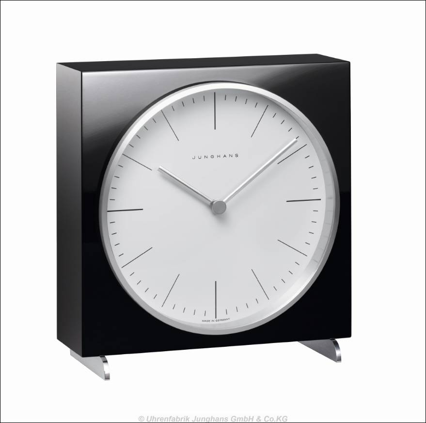 Bauhaus für die eigenen vier Wände: Die max bill Tischuhr basiert auf den Original-Designzeichnungen von Max Bill aus dem Jahr 1958. Durch hochwertige Materialien wie Mineralglas und gebürstetem Aluminium sowie einem mit schwarzem Klavierlack veredelten Holzgehäuse wird die Uhr zu einem edlen Wohnaccessoire.