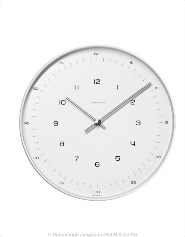 Maximale Schlichtheit und beste Ablesbarkeit verbindet auch die max bill Wanduhr. Die Entwürfe des Künstlers stammen aus dem Jahr 1959 und sind in ihrer Gestaltung eng an die erste Uhr Max Bills die Küchenuhr angelehnt. Unterstrichen wird die Klarheit durch ein satiniertes, auf dem schmalen Frontring diamantiertes Aluminiumgehäuse. Im Inneren tickt wahlweise ein Funk- oder Quarzwerk.